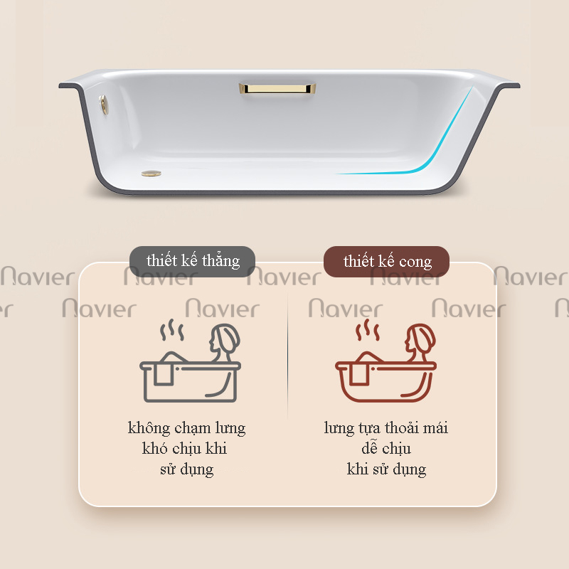 Viền cong mềm mại giúp tựa lưng thoải mái khi tắm