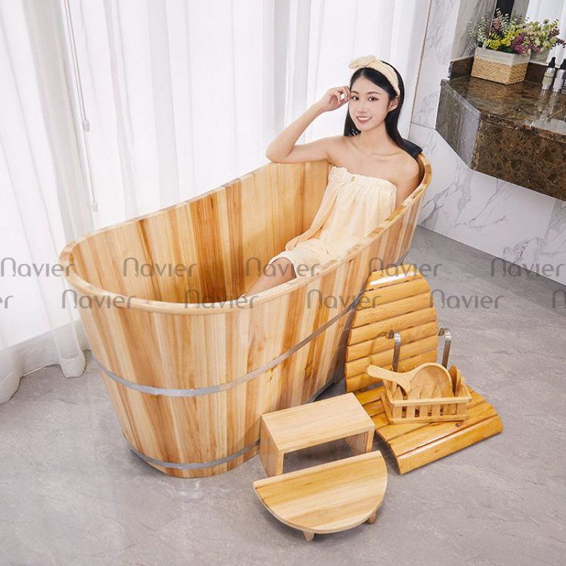 Bồn tắm nằm gỗ thông là một lựa chọn thân thiện với môi trường. Chúng được làm từ gỗ thông tái chế, giúp giảm thiểu tác động đến môi trường. Bạn có thể thư giãn trong không gian tự nhiên, thân thiện với môi trường, và sang trọng cùng một lúc.