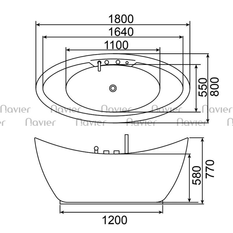 Bộ sản phẩm: Bồn tắm nằm dáng thuyền ( chưa kèm bộ vòi )